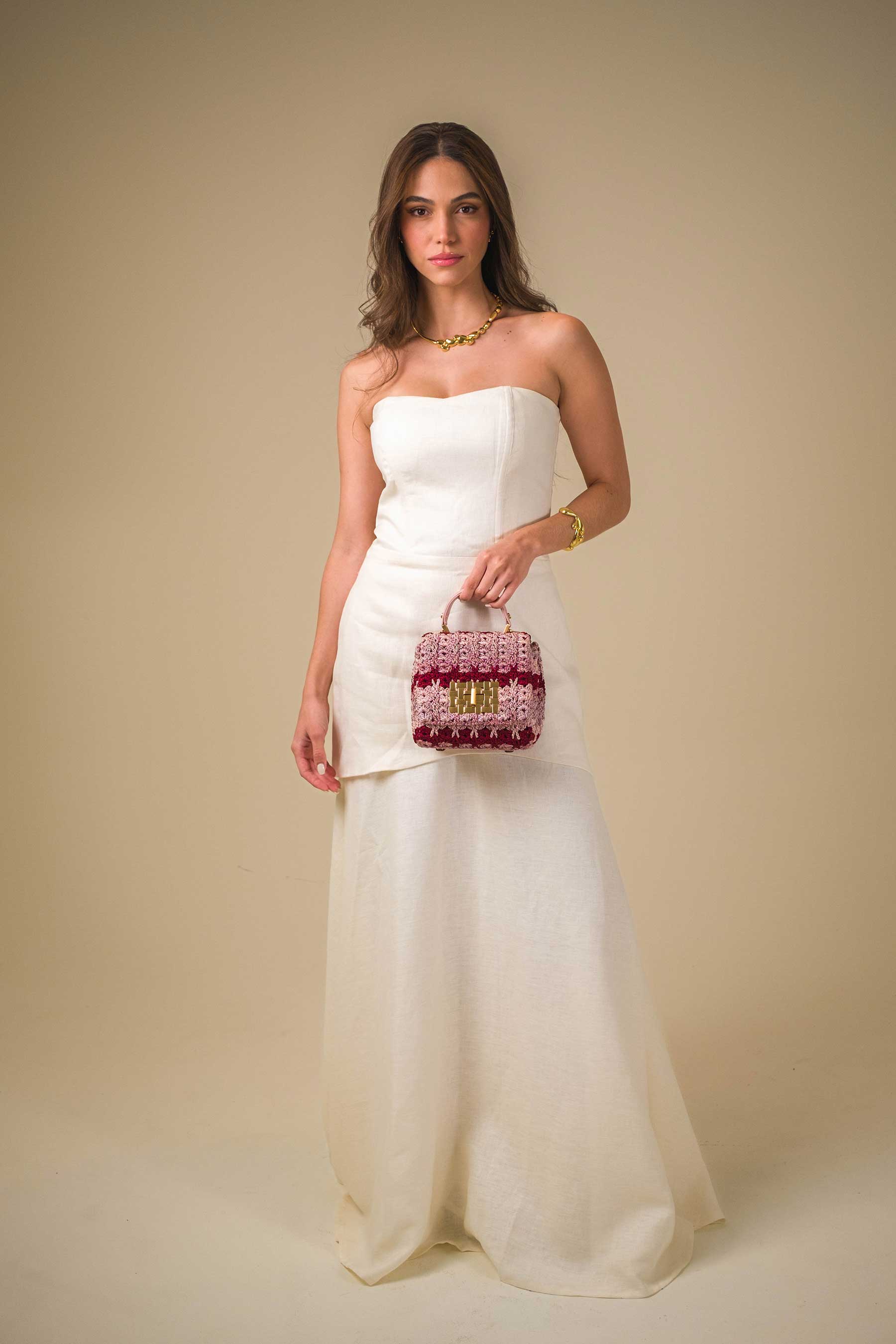 O design inconfundível de Fabiana agora em uma versão ainda mais autentica, o acabamento escolhido para essa bolsa foi o crochê confeccionado artesanalmente em uma composição de fios acetinados e estruturados, em padrões únicos desenvolvidos para a marca.
