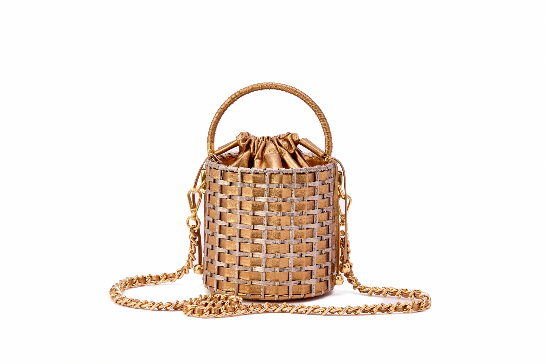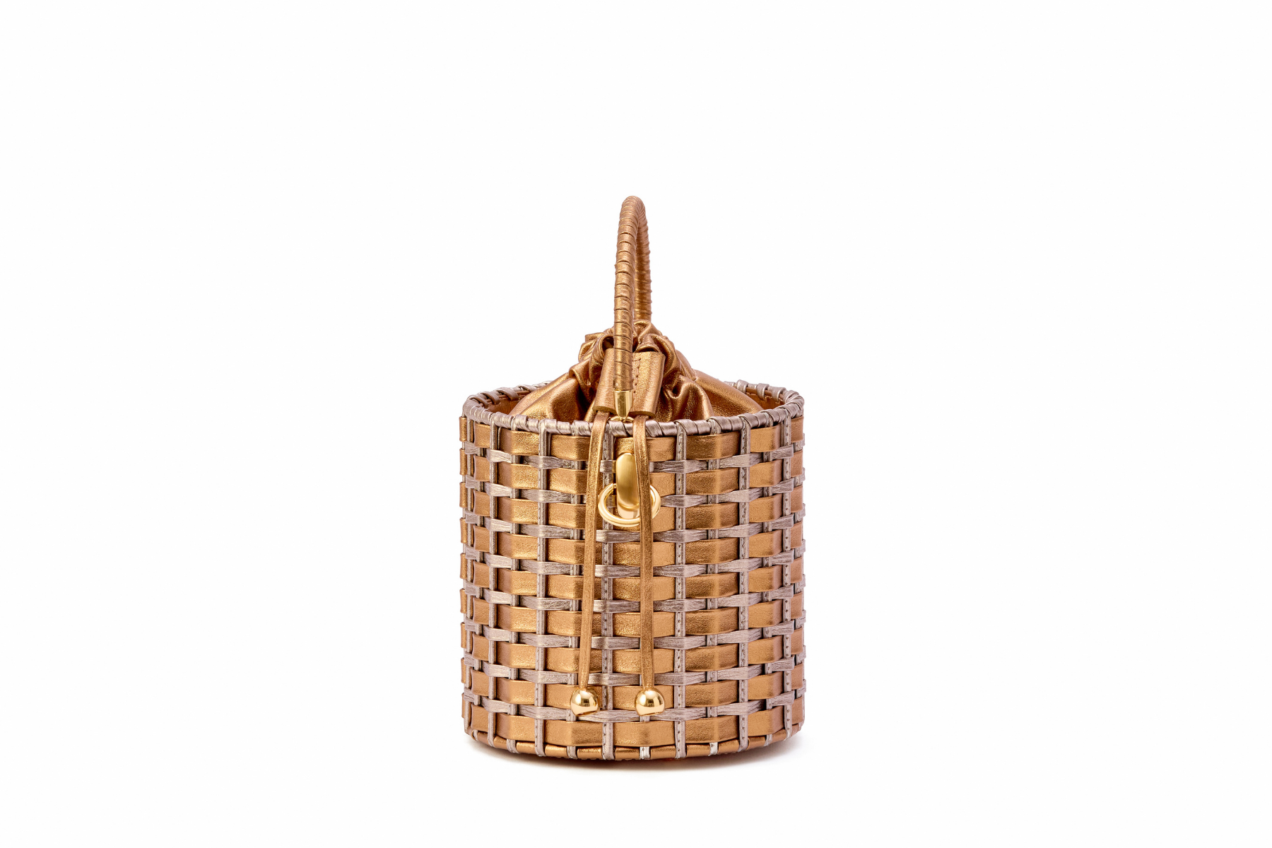 Lucila é uma releitura autoral das cestarias, marcada pelo tramado artesanal em couro legítimo e metais sofisticados.