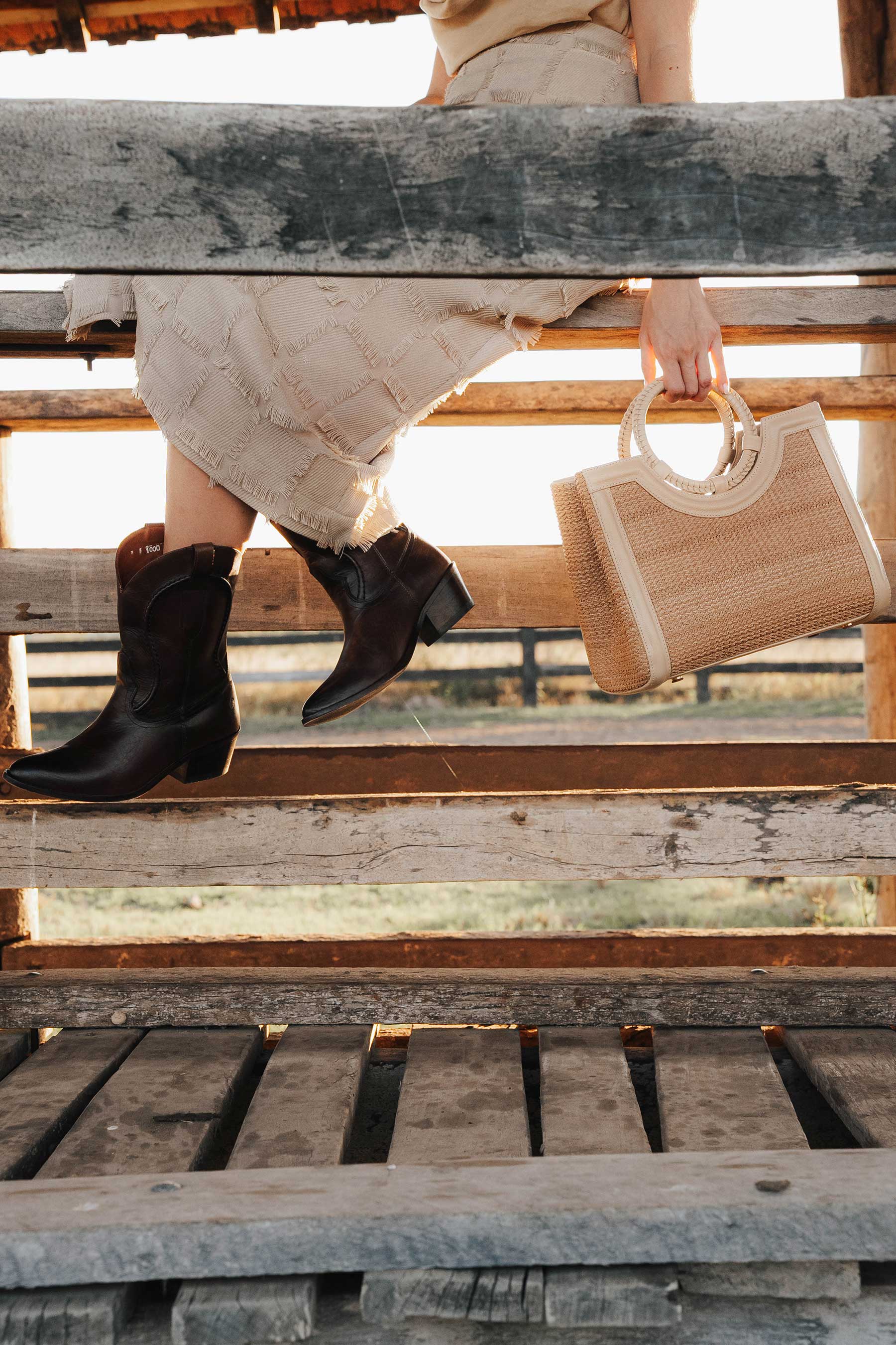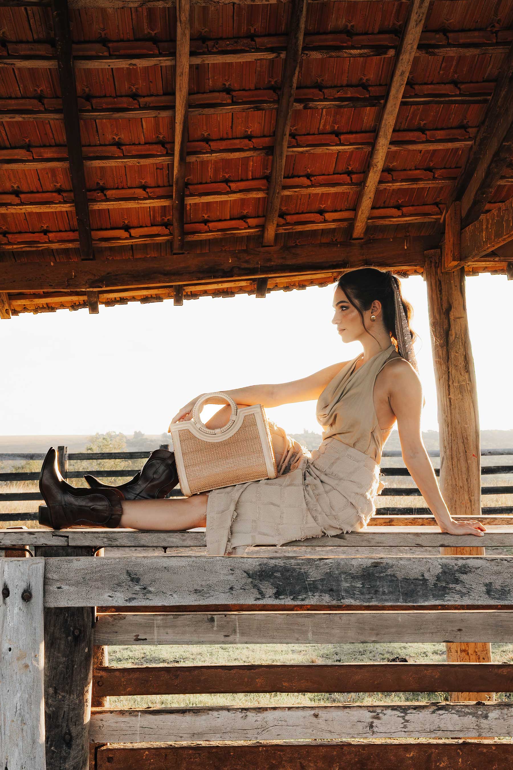 Bolsa Marcela Mini Ráfia Natural c/ Creme