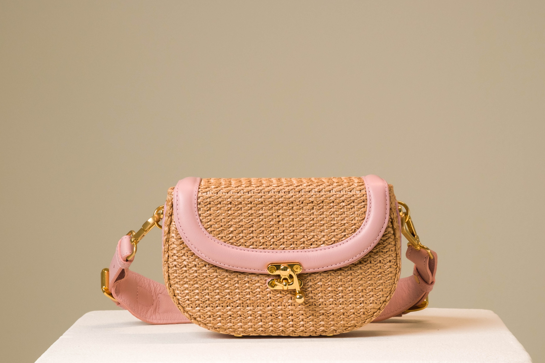 Bolsa Silvia Pochete Ráfia Natural c/ Rosa Bebê